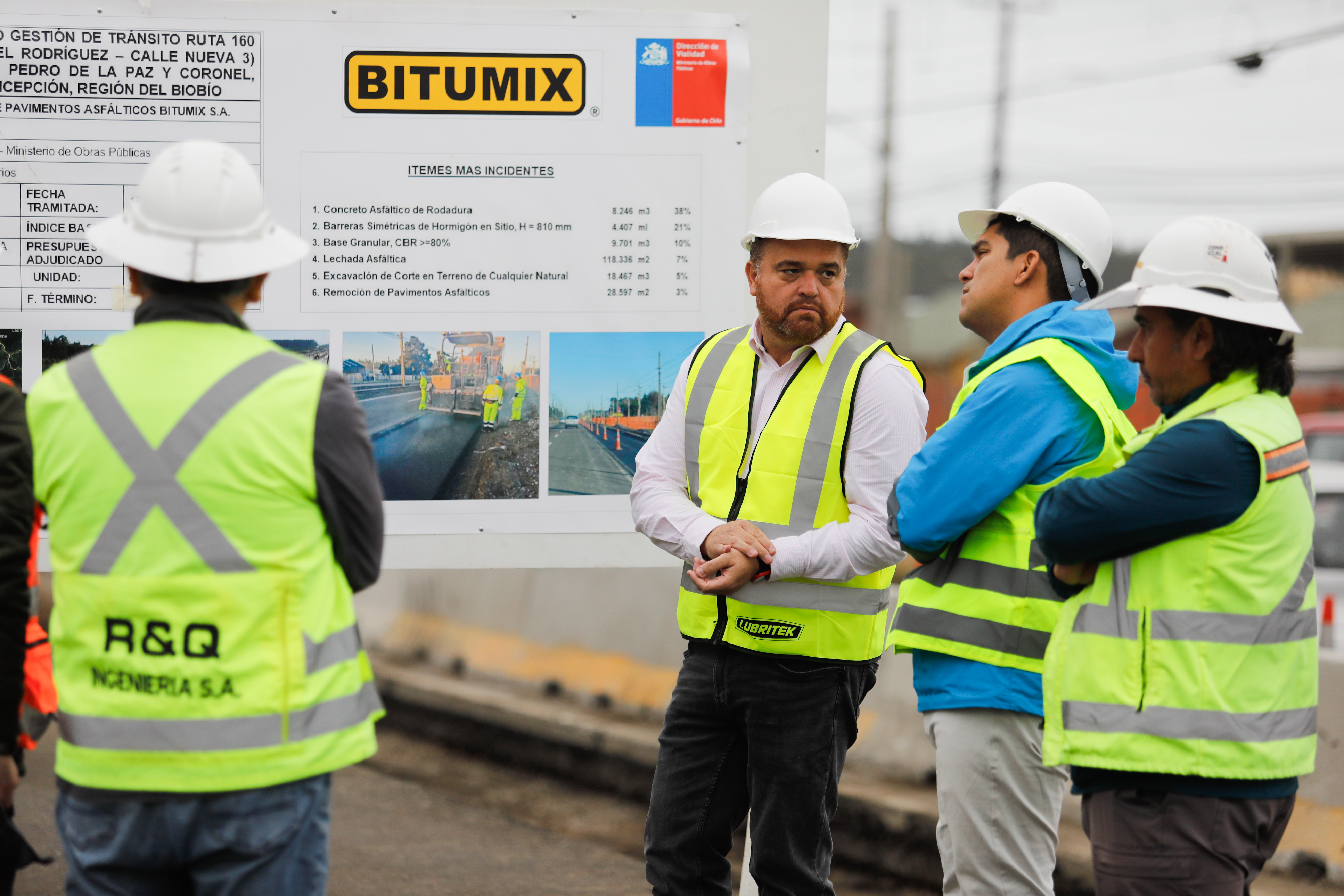 Trabajos financiados por el GORE por un monto de más de $9 mil millones, que consideran un tramo de 4 kilómetros en la Ruta 160, los cuales tienen un 38% de avance y deberían estar finalizadas en julio próximo.