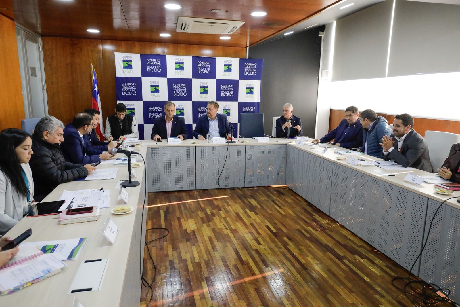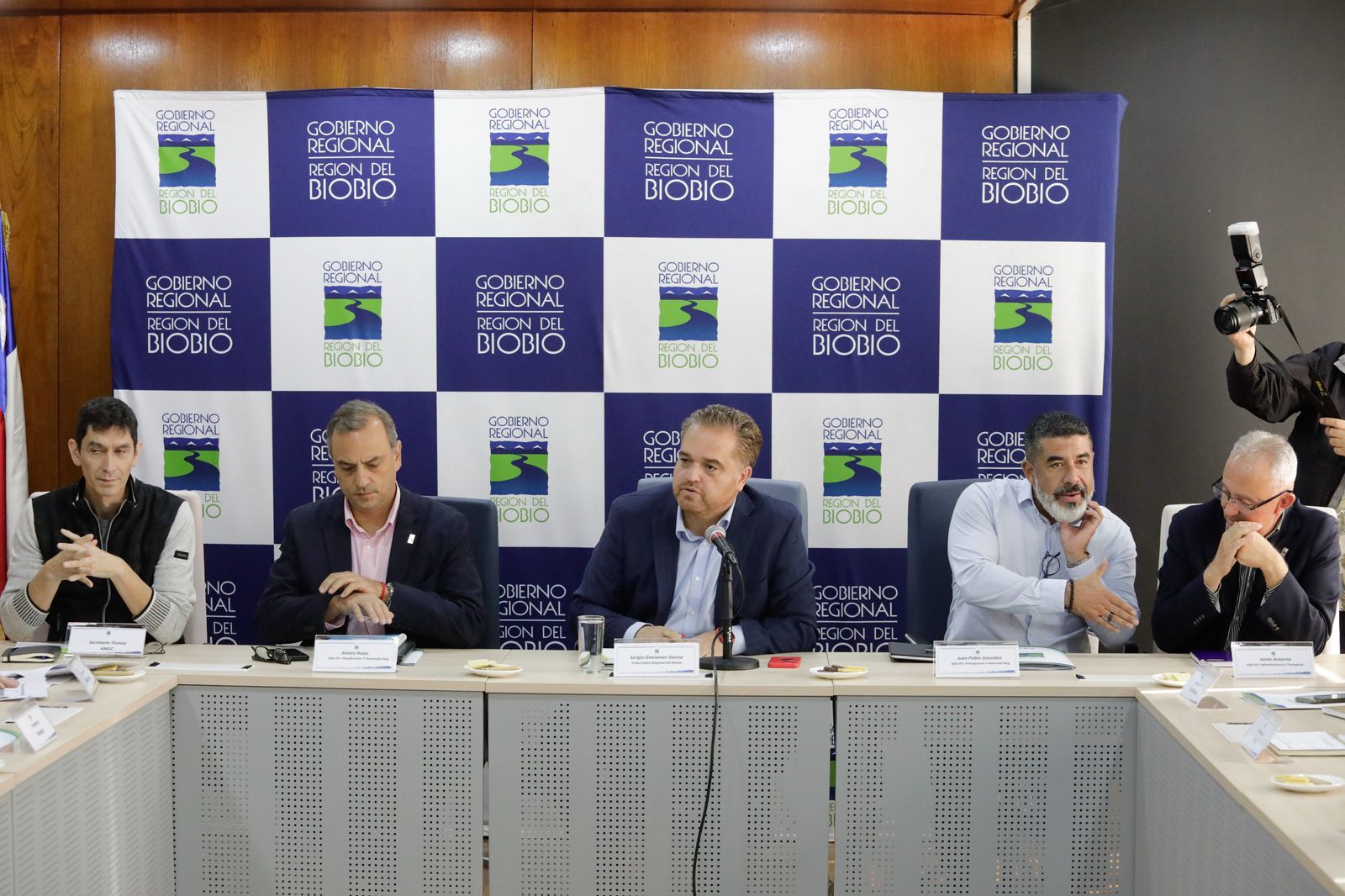 El gobernador de la región del Biobío, Sergio Giacaman, junto al jefe de la División de Planificación y Desarrollo Regional (Diplade), Álvaro Rojas, lideró este lunes la primera sesión del Comité de Alcaldes del Gran Concepción.