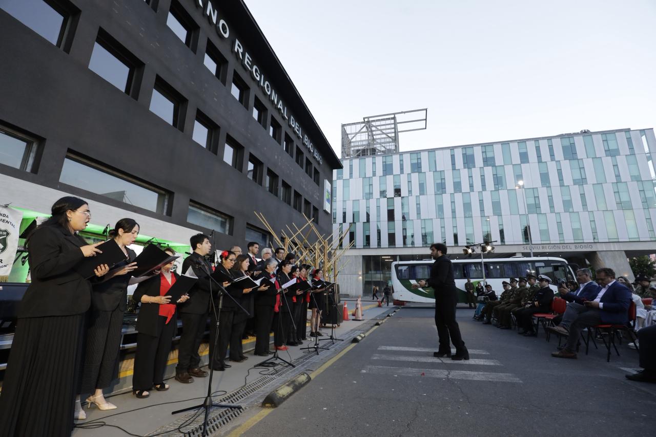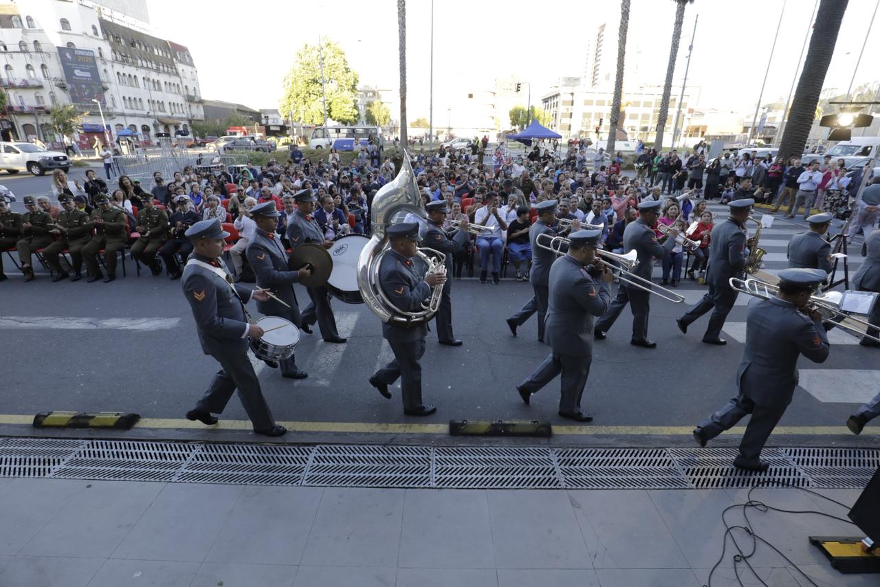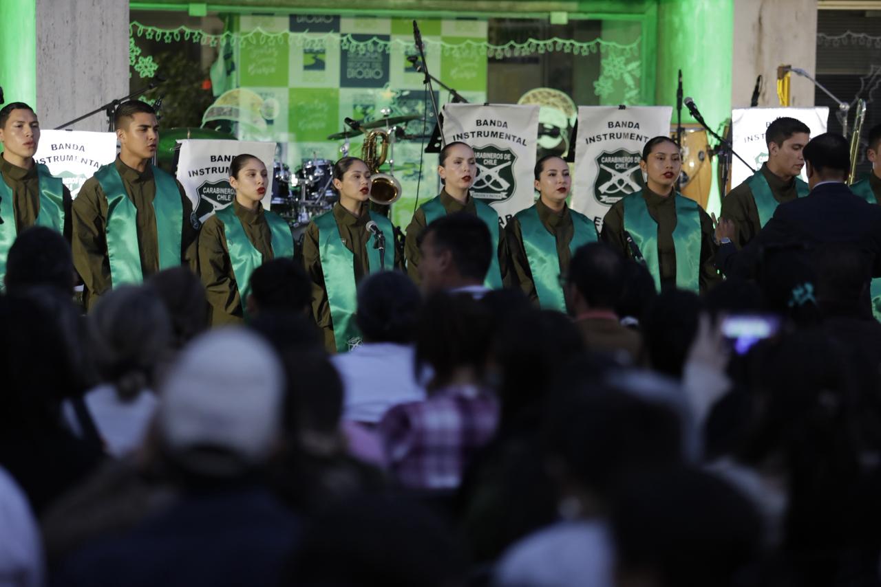 En este espectáculo gratuito, participaron tres coros y las bandas instrumentales de Carabineros Grupo Concepción, y la Banda instrumental del Regimiento N°6 Chacabuco del Ejército de Chile, quienes deleitaron a los penquistas al interpretar los conocidos villancicos.